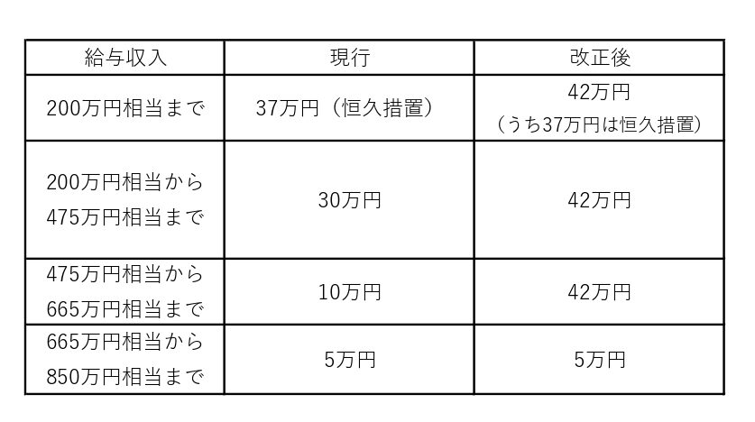 (注)上記の改正は、令和8年分以後の所得税について適用されます。なお、給与等及び公的年金の源泉徴収については、令和9年1月1日以後に支払うべき給与等又は公的年金について適用されます。